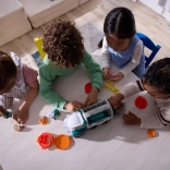 The set includes an exclusive Grandpa Gravel figure—an experienced builder and mentor who inspires teamwork and creative play. Thanks to a rich selection of molds (e.g., pizza mold, bowl, spoons, cups, dog bowl), kids can prepare “treats” and shape building parts, developing creativity and motor skills.