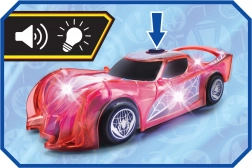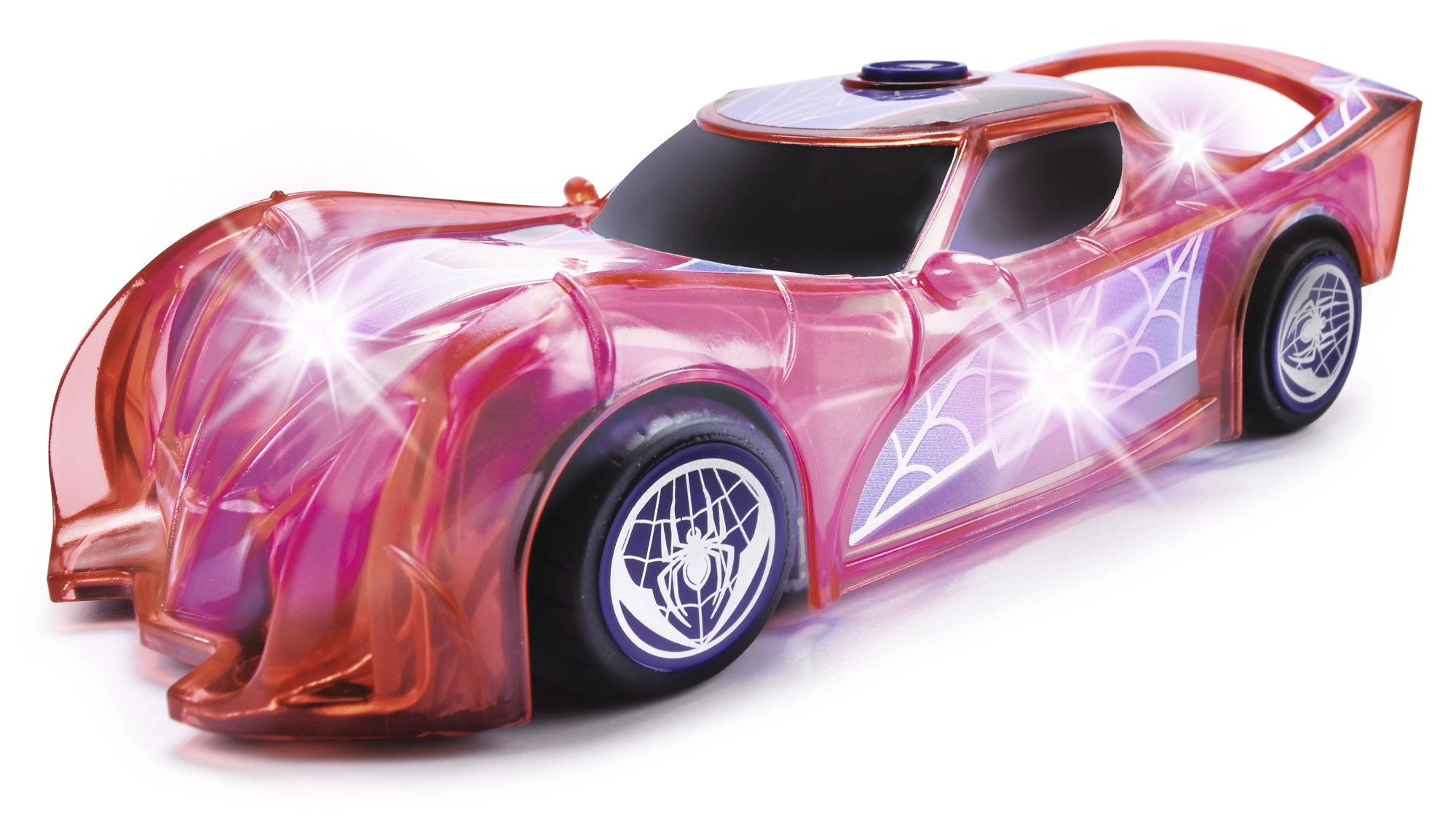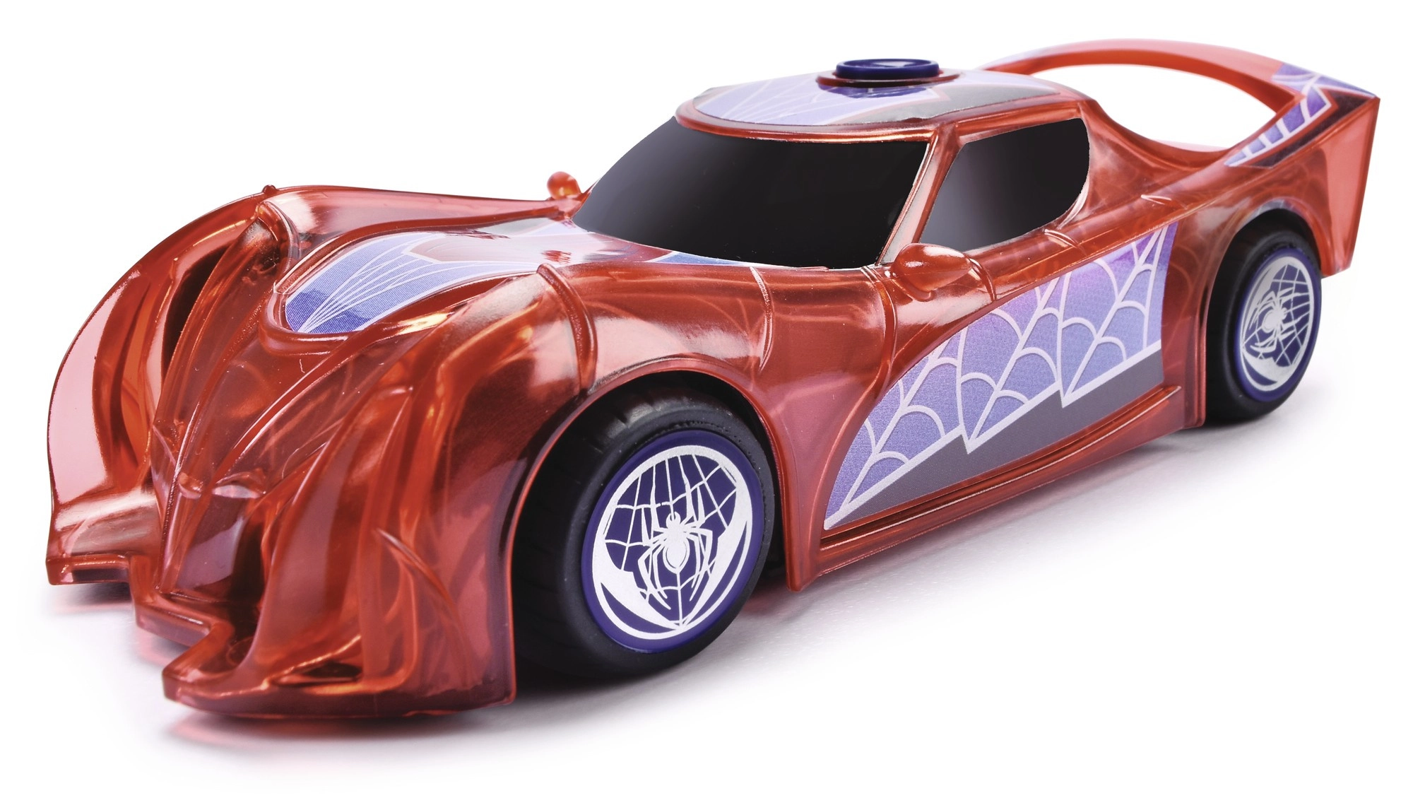 The translucent body with a web motif lights up while driving. The lights boost the suspenseful atmosphere and make play more appealing even in the dark.
