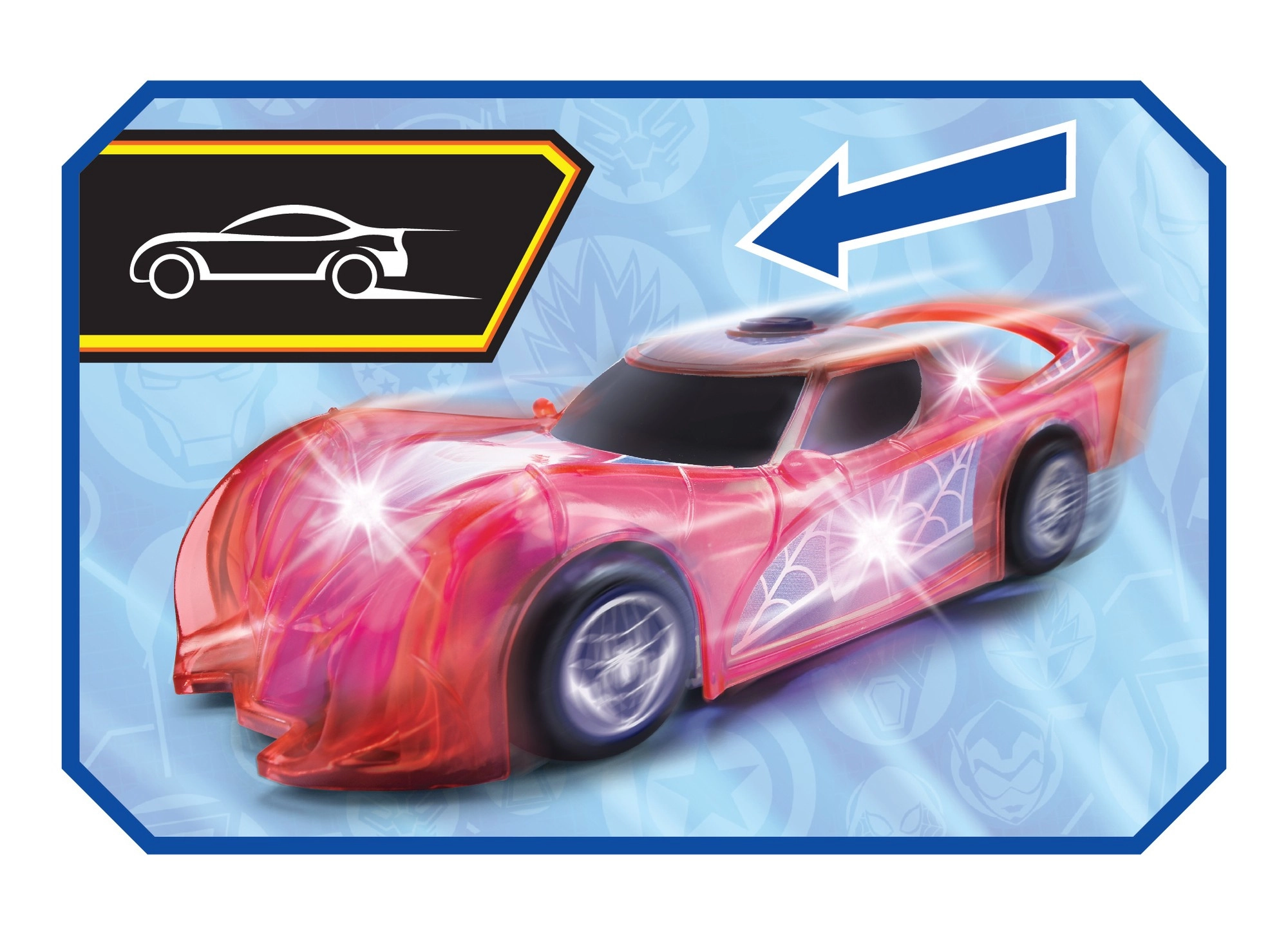 A stylish car inspired by SPIDER‑MAN from the MARVEL universe delights kids with light and sound effects and an easy friction drive. A transparent body with a web motif, an aerodynamic spoiler, and durable wheels ensure action‑packed rides and spark the imagination for superhero scenes.