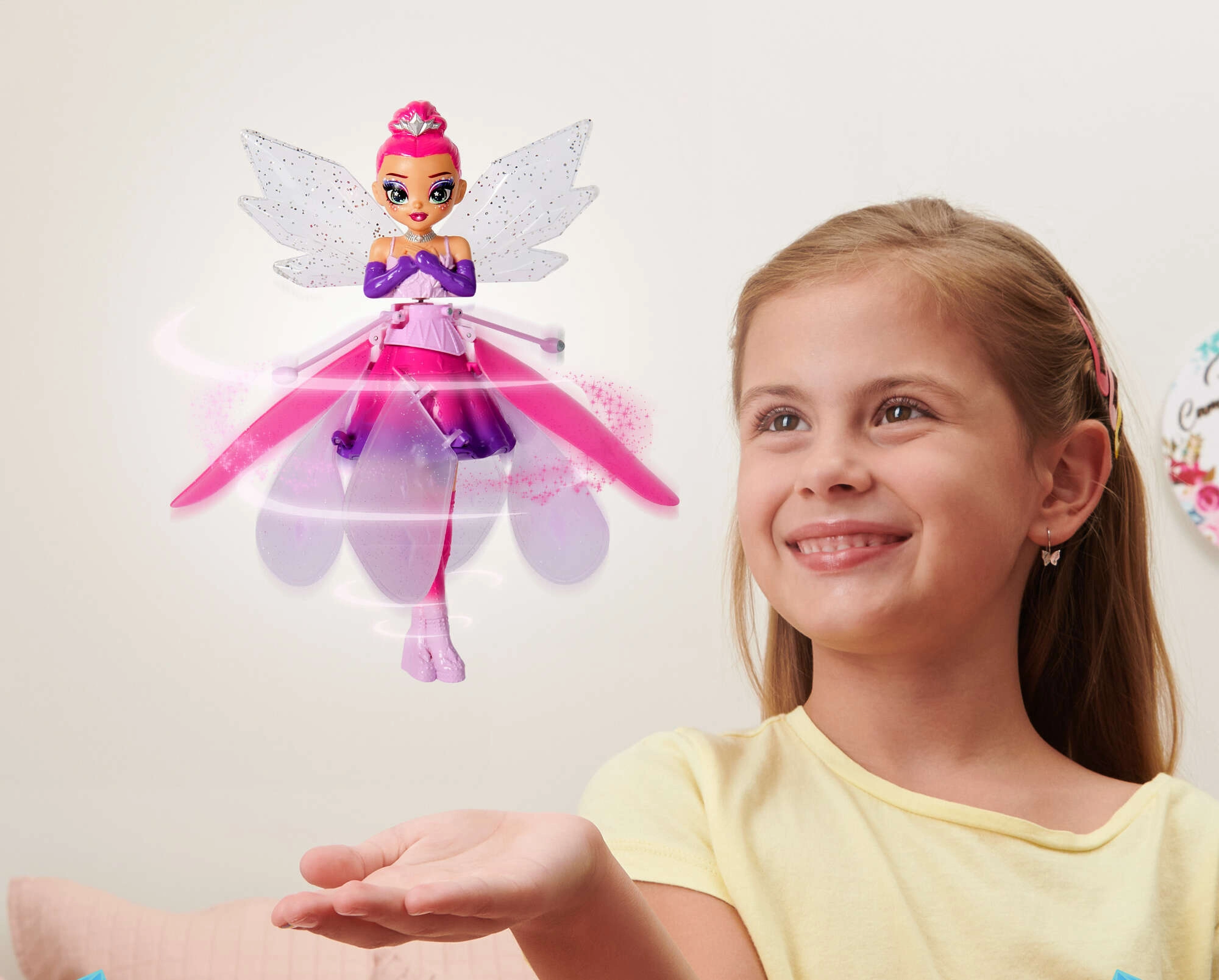 Crystal-like wings, vibrant colors, and lightweight materials create a magical effect as she flies and the rotor spins.