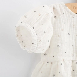 Lightweight muslin dress New Baby Zora for little fashionistas. It features an A-line cut, short sleeves, comfortable front button fastening, and a gathered skirt. Made from soft and breathable muslin of 100% cotton – soft to the touch, airy, and comfortable to wear all day long.