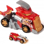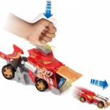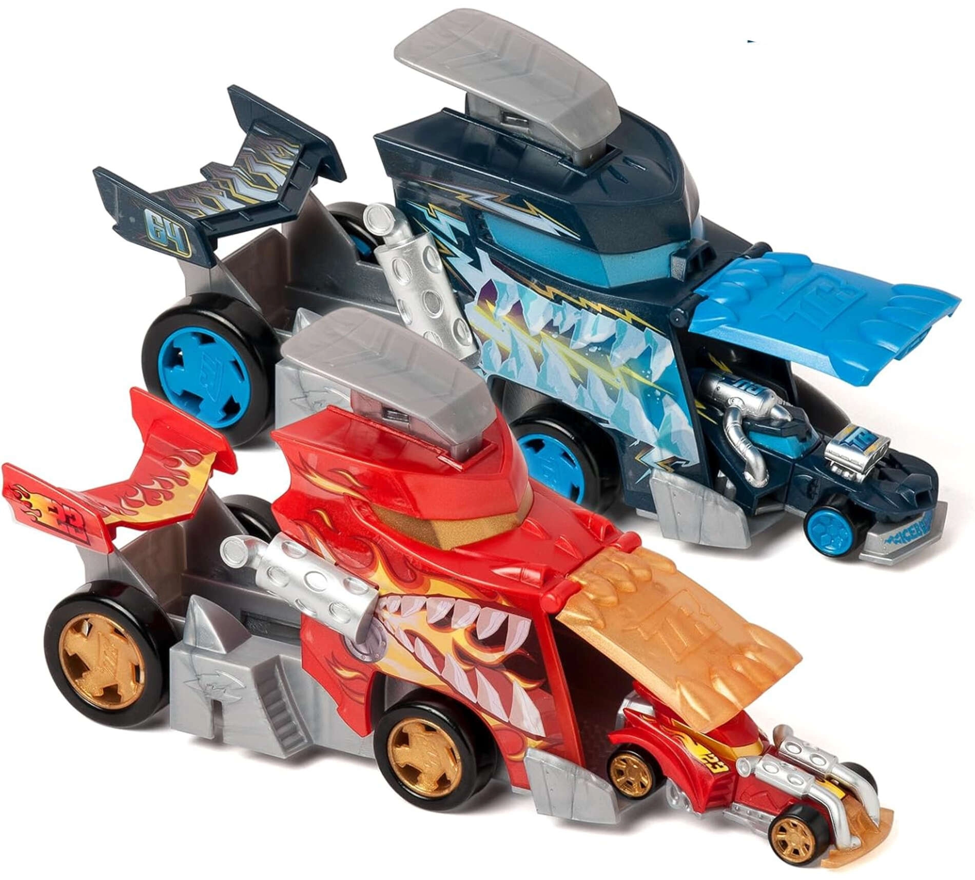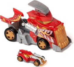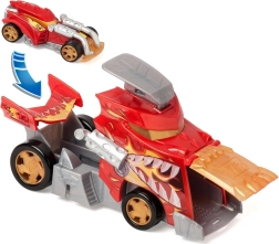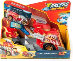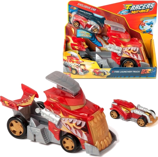 The T-Racers Mix ’N Race Fire Launcher Truck set brings kids dynamic racing and the freedom to create. The dragon-style truck transports your cars and, thanks to the integrated launching ramp, sends them forward at lightning speed. An exclusive race car is included, and its parts can be combined with other models from the Mix ’N Race line.