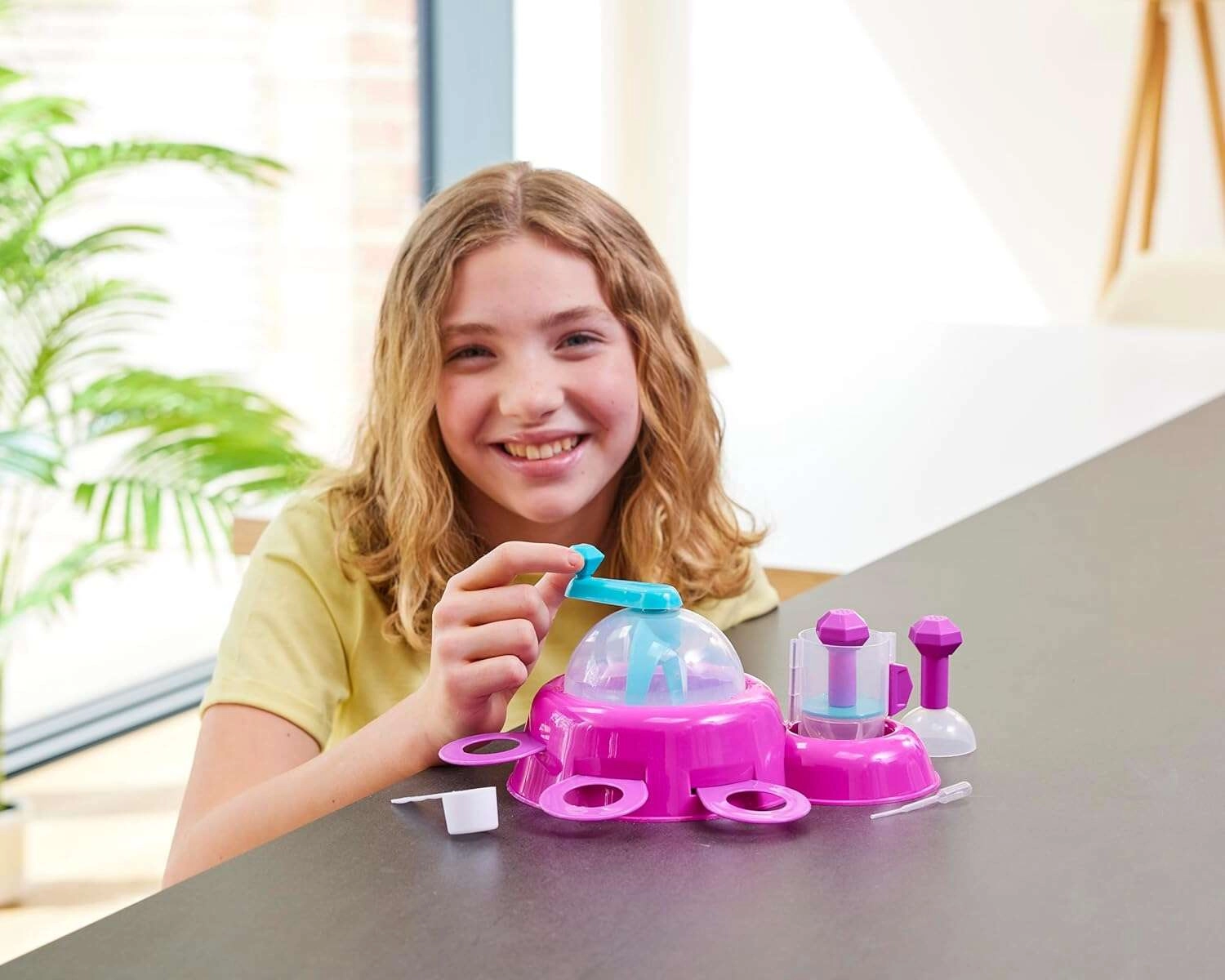 The practical mixing station with a transparent cover keeps ingredients together and makes clean, safe crafting easier.