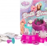 - mixing station, ball molds, ingredients for the fizzing mixture and coloring, tools for mixing and decorating, instructions