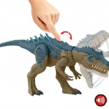 It also includes an attack-movement feature — press the button to trigger head and jaw action, enhanced by realistic dinosaur sounds that boost the atmosphere. A pull-out scan tag is hidden in the body; scan it in the JURASSIC WORLD app to unlock digital content and expand your adventures.