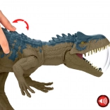 The interactive JURASSIC WORLD Allosaurus adds excitement and a realistic look to playtime. Detailed skin texture, prominent teeth and eyes, a dynamic silhouette, and accurate proportions create a convincing impression of a prehistoric predator. Thanks to the poseable limbs, neck, tail, and jaws, the figure can be easily set into action poses.