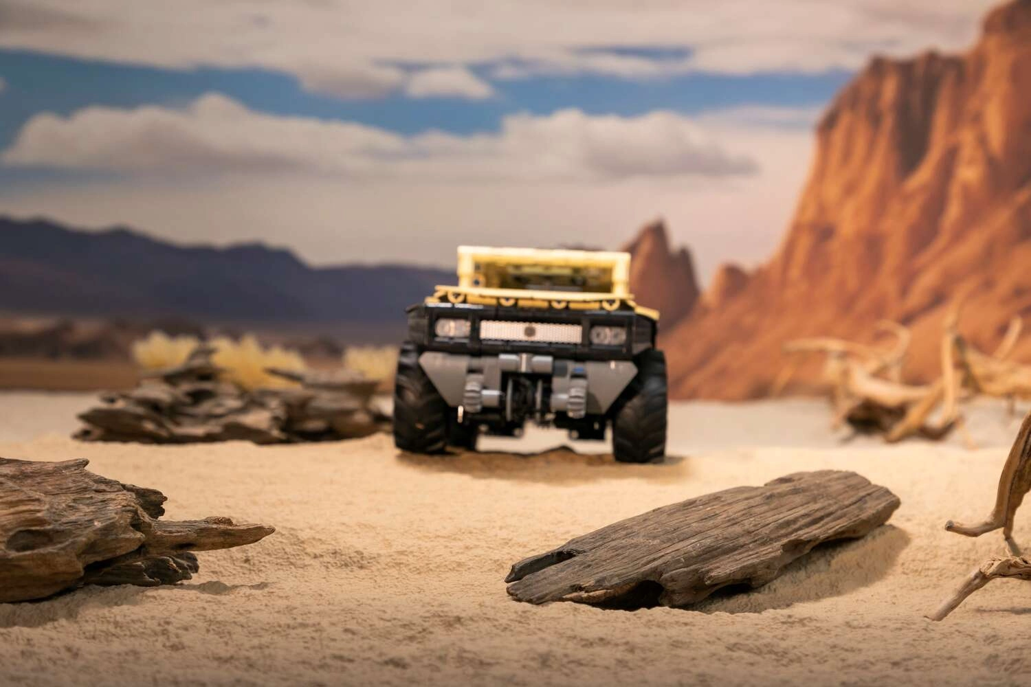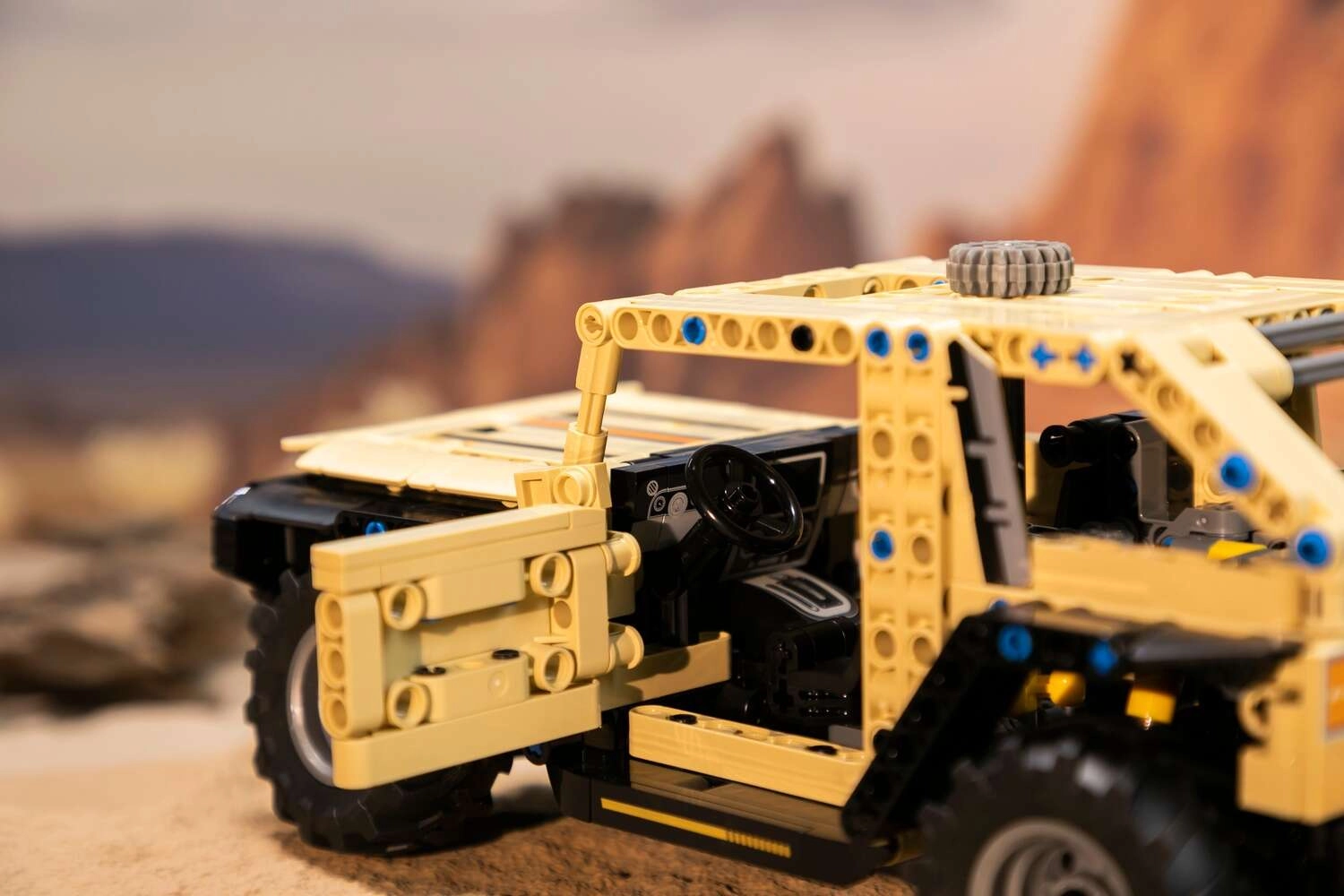 A detailed cabin with a steering wheel and interior touches enhances the feel of a real off-roader. The doors open smoothly.