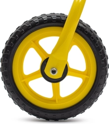 The large 12" EVA wheels are puncture-resistant, cushion uneven surfaces, and require no maintenance. The adjustable saddle height of 36–42 cm grows with your child, while the non-slip TPE grips fit securely in small hands. Both the handlebars and wheels feature bearings for smooth control and a fluid ride.