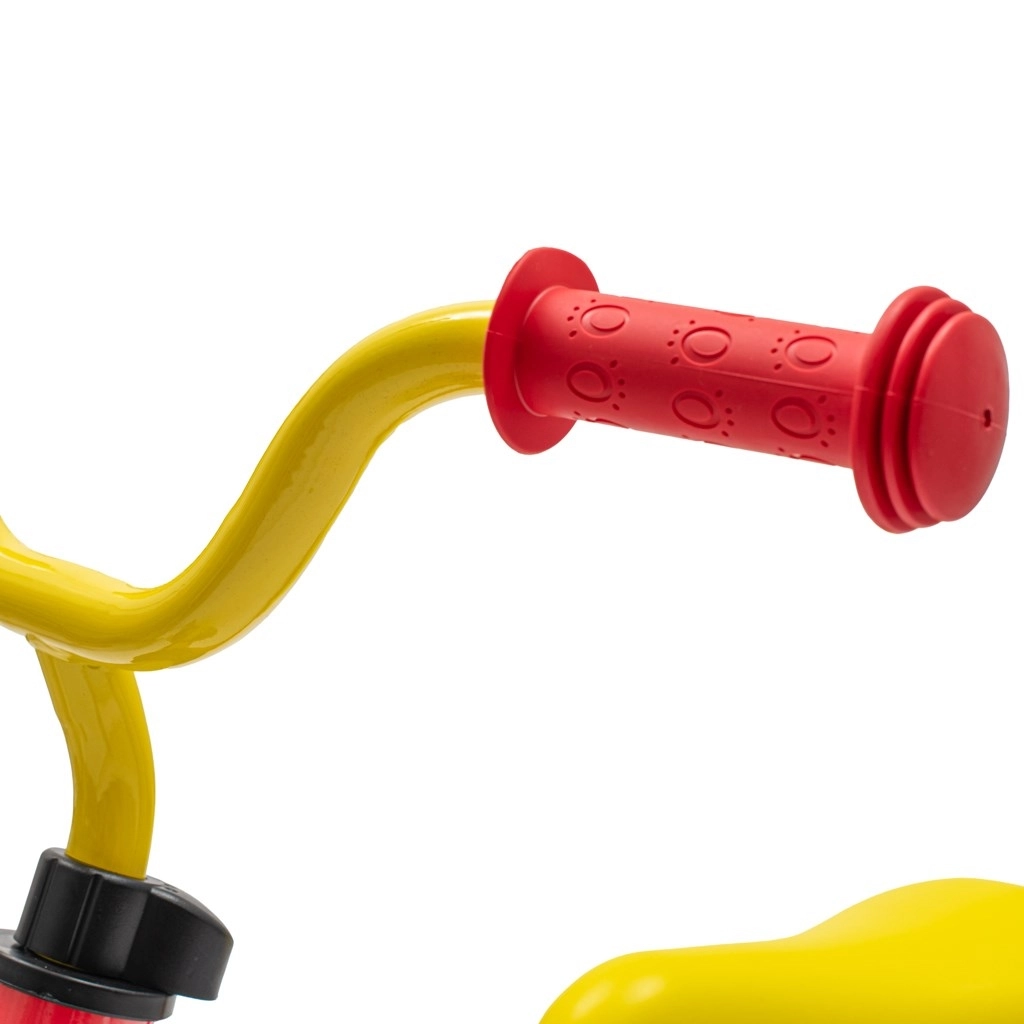 Soft height-adjustable saddle (36–42 cm) and non-slip TPE grips for a safe hold in small hands.