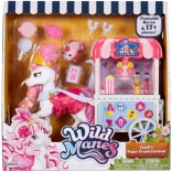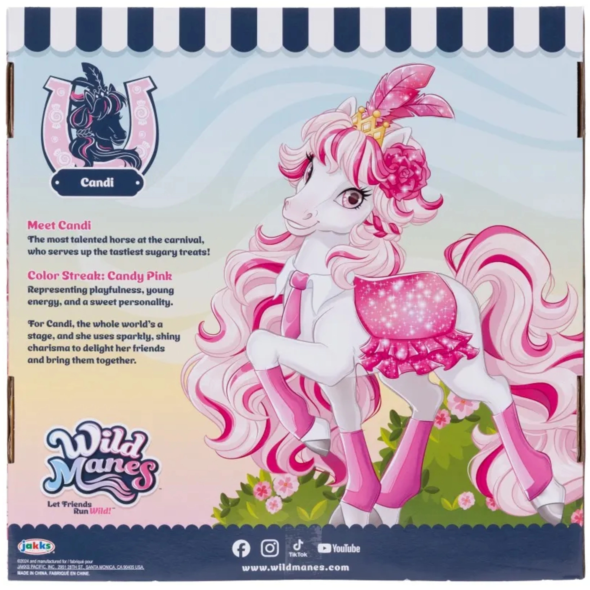The unicorn Candi charms with her white body, pink mane and tail, sparkling crown, and stylish outfit. Thanks to poseable limbs, the figure can be easily set into different poses to relive favorite scenes from the world of WILD MANES.