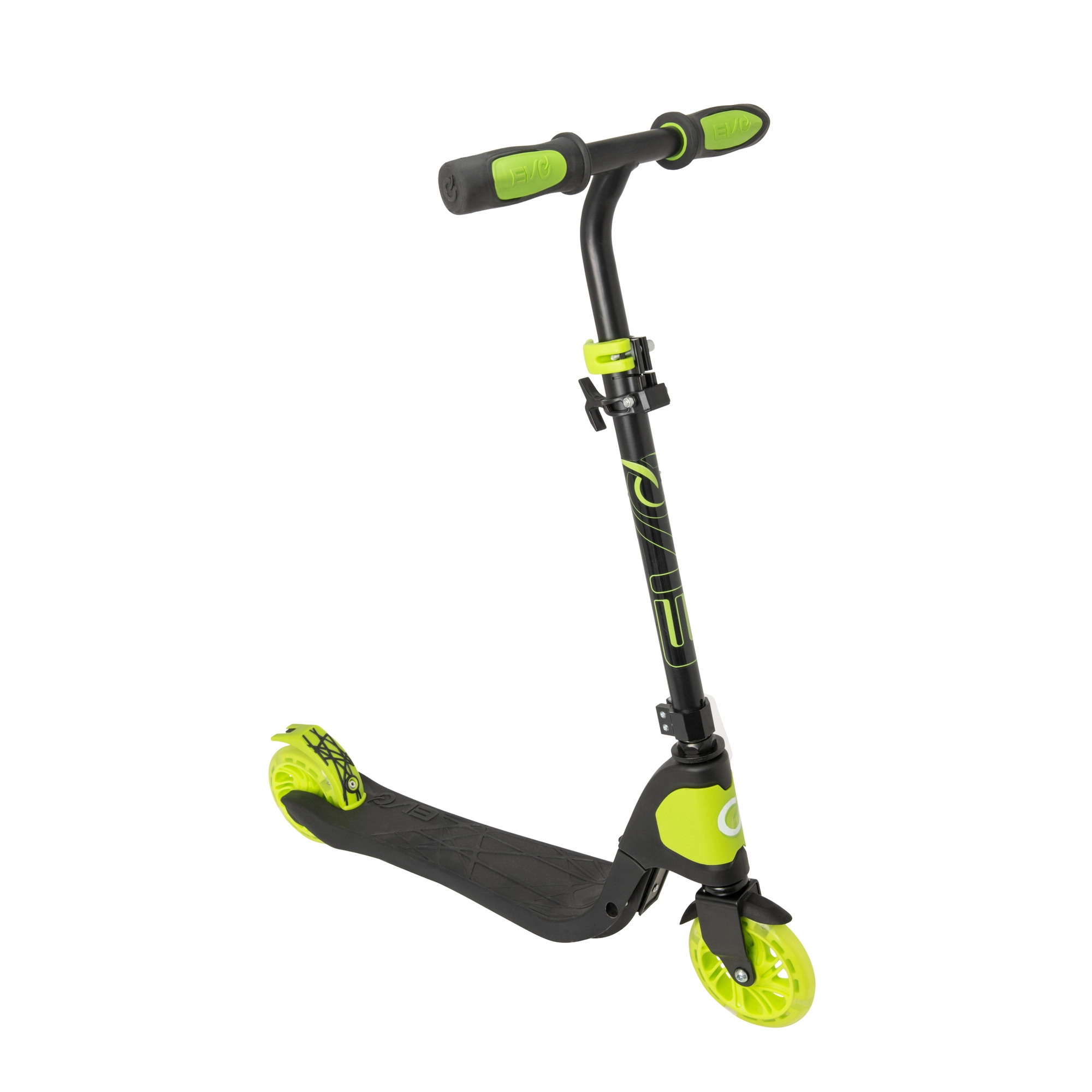 The lightweight and stable EVO Light Speed kids’ scooter combines a foldable design, adjustable handlebars, and light-up wheels for a fun and safe ride. Thanks to quiet ABEC-5 bearings, a foot brake, and comfortable TPR grips, it’s ideal for children from 5 years for recreational riding on smooth surfaces.
