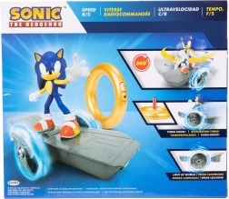 Discover speed and style with SONIC. The set includes an approx. 15 cm removable figure on a futuristic vehicle with two large transparent wheels. Control is handled via the iconic golden ring, which activates the drive and the wheel lighting effects.