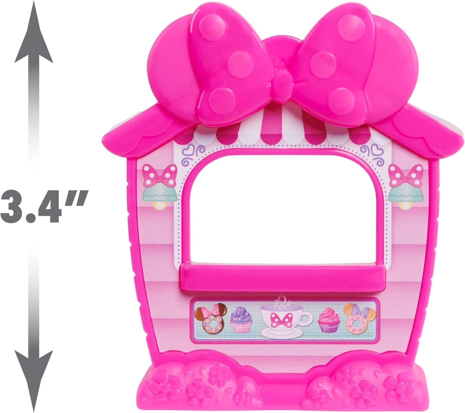Box contents: Minnie figure, pink plastic stand/kiosk, cup with saucer, tiered cake, and cupcake. Play stimulates creativity, develops communication and manual skills. The product is designed with children’s safety in mind.