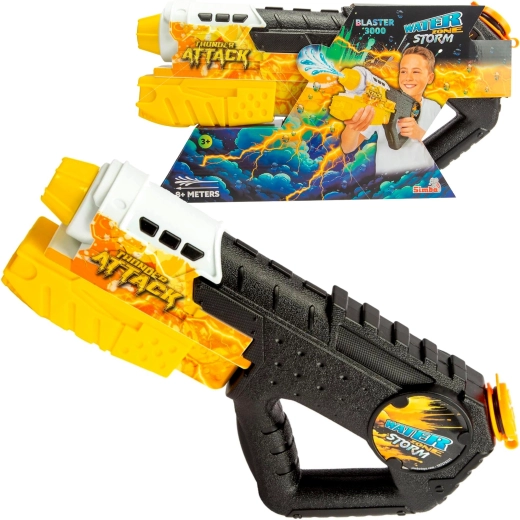 Experience refreshing summer battles with the Waterzone Storm Blaster 3000 water gun by SIMBA. Thanks to its pump-action drive, large 800 ml tank, and range up to 8 m, this robust blaster delivers great performance, comfortable handling, and long-lasting outdoor fun.
