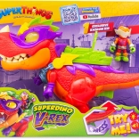 - In the box: 1× V‑Rex Superdino figure with lights and sounds, 1× exclusive SuperThing (villain), 1× exclusive Kazoom Kid.