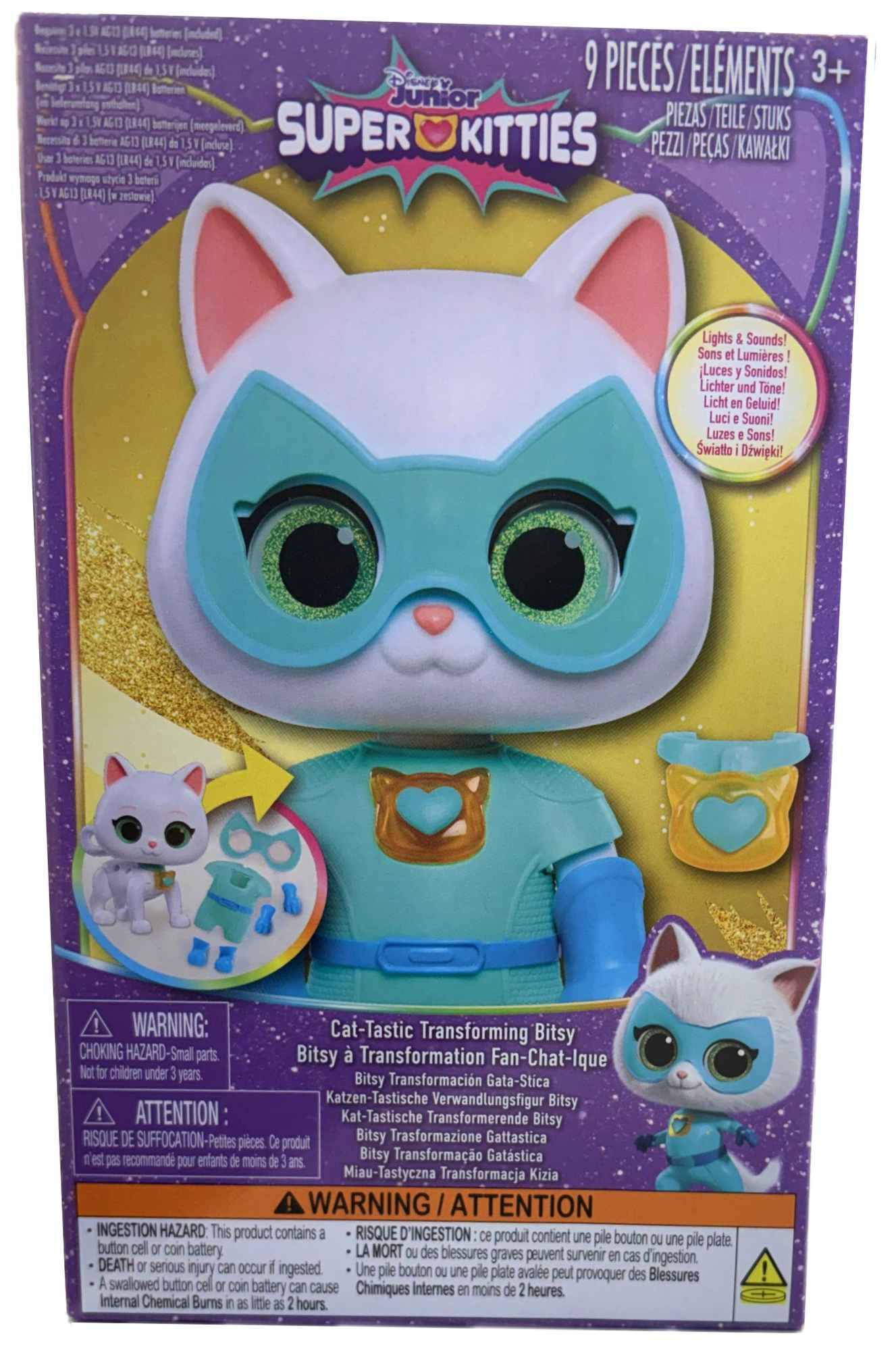 Discover the magic of SUPERKITTIES with the interactive Bitsy figure. With bold colors, authentic details, and light and sound functions, kids can dive into their favorite adventures. The figure fits perfectly in little hands and can go anywhere.