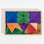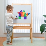 This 24-piece starter set is a great introduction to magnetic building. Kids can easily build castles, bridges, and rockets while naturally developing scientific and technical thinking, understanding of magnetism, and spatial geometry. The crystal-clear, colorful tiles are scratch-resistant, and strong magnets keep constructions firmly together.
