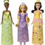 Each doll includes a removable glittery skirt or outfit, a crown or headband, and detailed accessories for stylish dress-up.