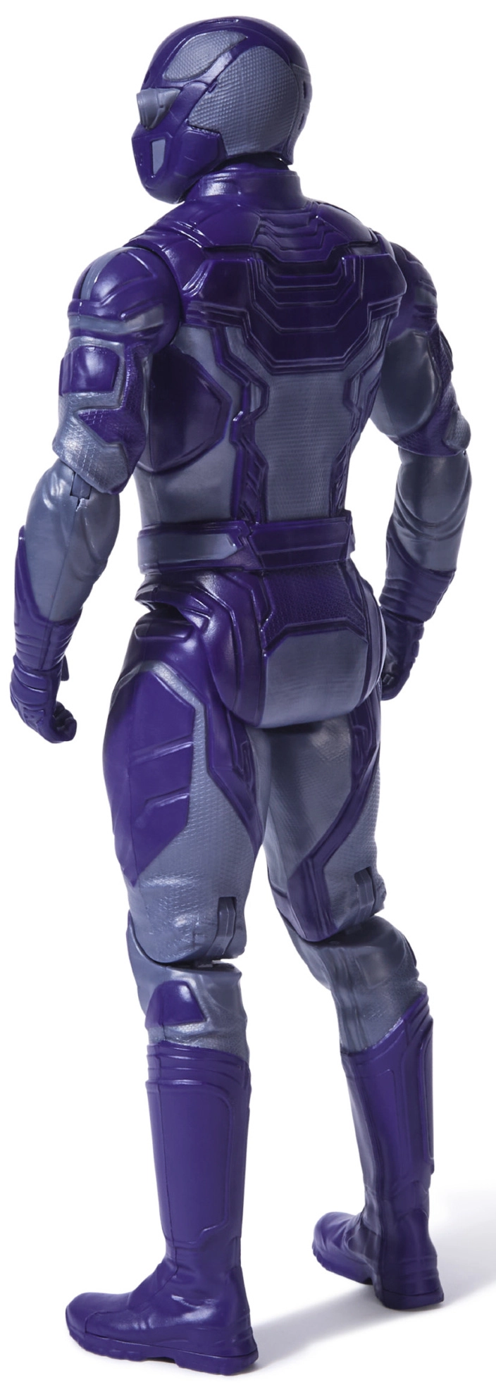 Purple armor with precise detailing and the iconic chest symbol faithfully references the character from the DC universe.