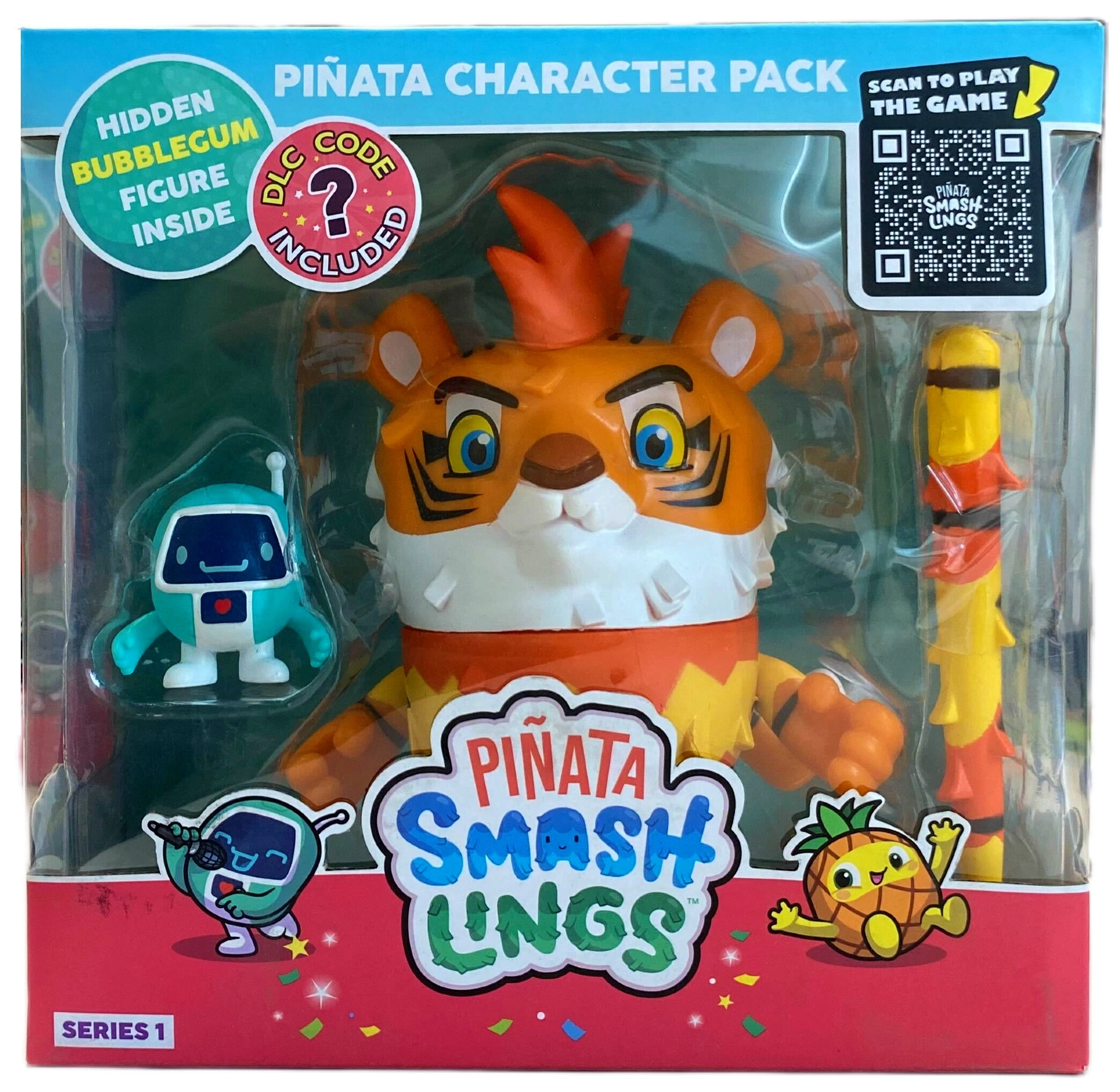 Step into the world of PINATA SMASHLINGS and discover the Tiger Mo piñata with a hidden mini figure and 2 additional collectible characters. This fun set connects physical figures with digital content (DLC code), offering vibrant colors, cute details, and lots of surprises with every unboxing.
