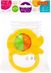 This cute apple-shaped rattle measuring 11 cm is designed for a baby’s first discoveries. The colorful, rotating center creates a pleasant rattling sound that encourages auditory stimulation, while the bold colors support visual perception.