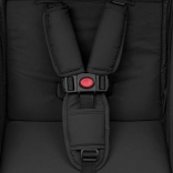 Comfort is ensured by a reclining backrest from upright to recline, an adjustable footrest, and a removable bumper bar. The set includes a practical footmuff that protects against cold and wind. Safety is supported by an automatic unfold lock and a linked rear-wheel brake. The product complies with EN 1888.