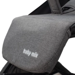 The stroller includes a soft Baby Mix footmuff that protects against wind and cold and matches the stroller’s color.