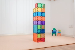 CONNETIX is an award-winning Australian brand that inspires children to explore science and creativity through play. The set of 42 rainbow-colored square tiles is a great start for building towers, castles, bridges, and rockets. Neodymium magnets hold firmly from every side, and the transparent panels let you observe connections and light effects.