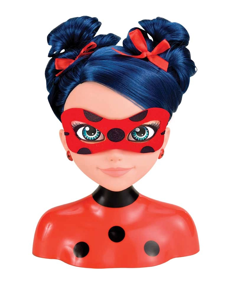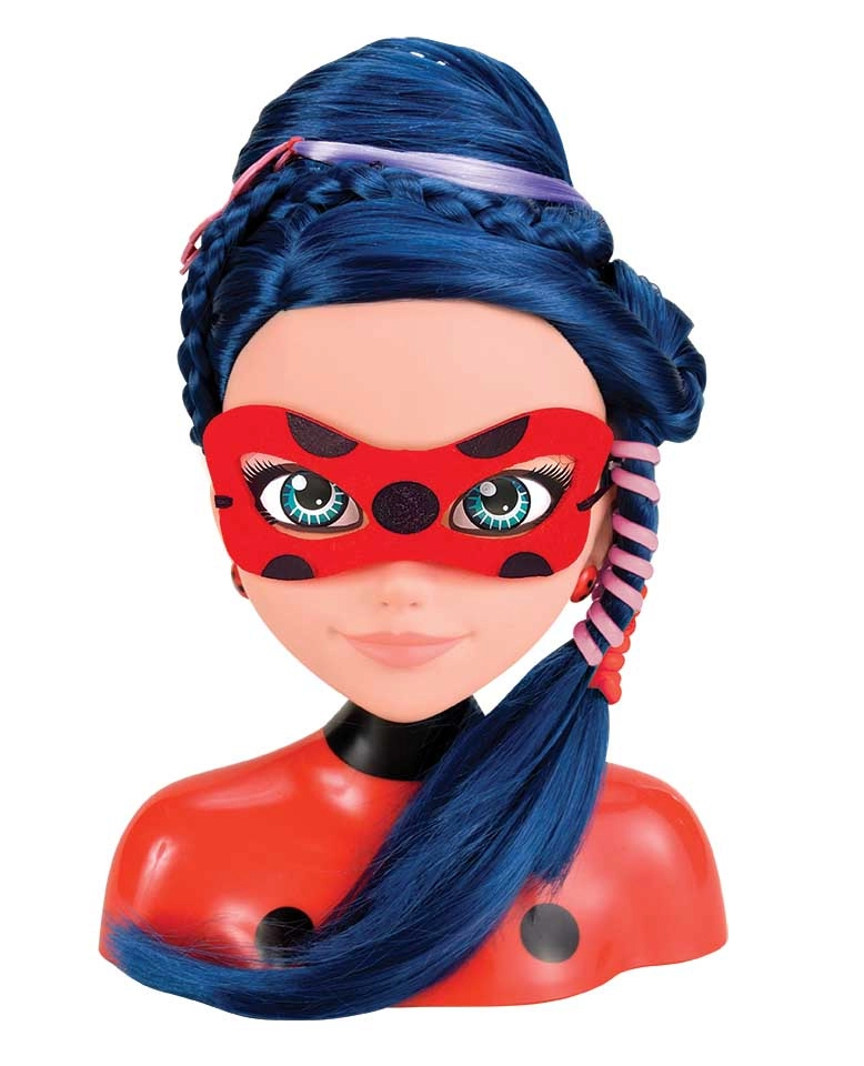 The Marinette styling head inspired by the MIRACULOUS series features delicate facial features, striking blue eyes, and long, soft dark blue hair that’s easy to style. A stable bust base makes brushing easier and lets you display it in a child’s room.