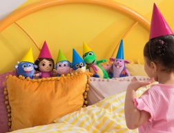 The eyes, smile, and small elements are embroidered, so the toy has no small parts and is suitable for children aged 3 and up.