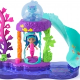 The slide, coral decorations, and clear dome create a captivating aquarium where Gabi and Merkitty set off on new stories.