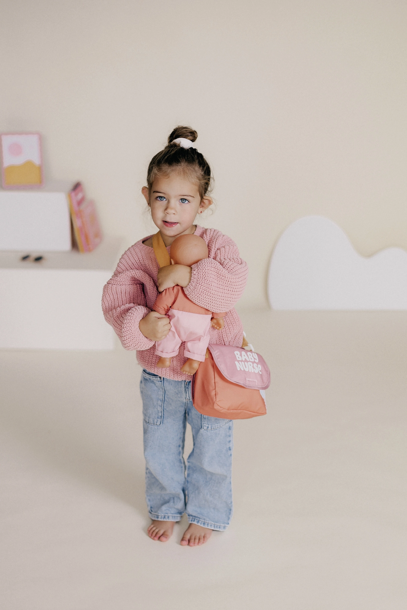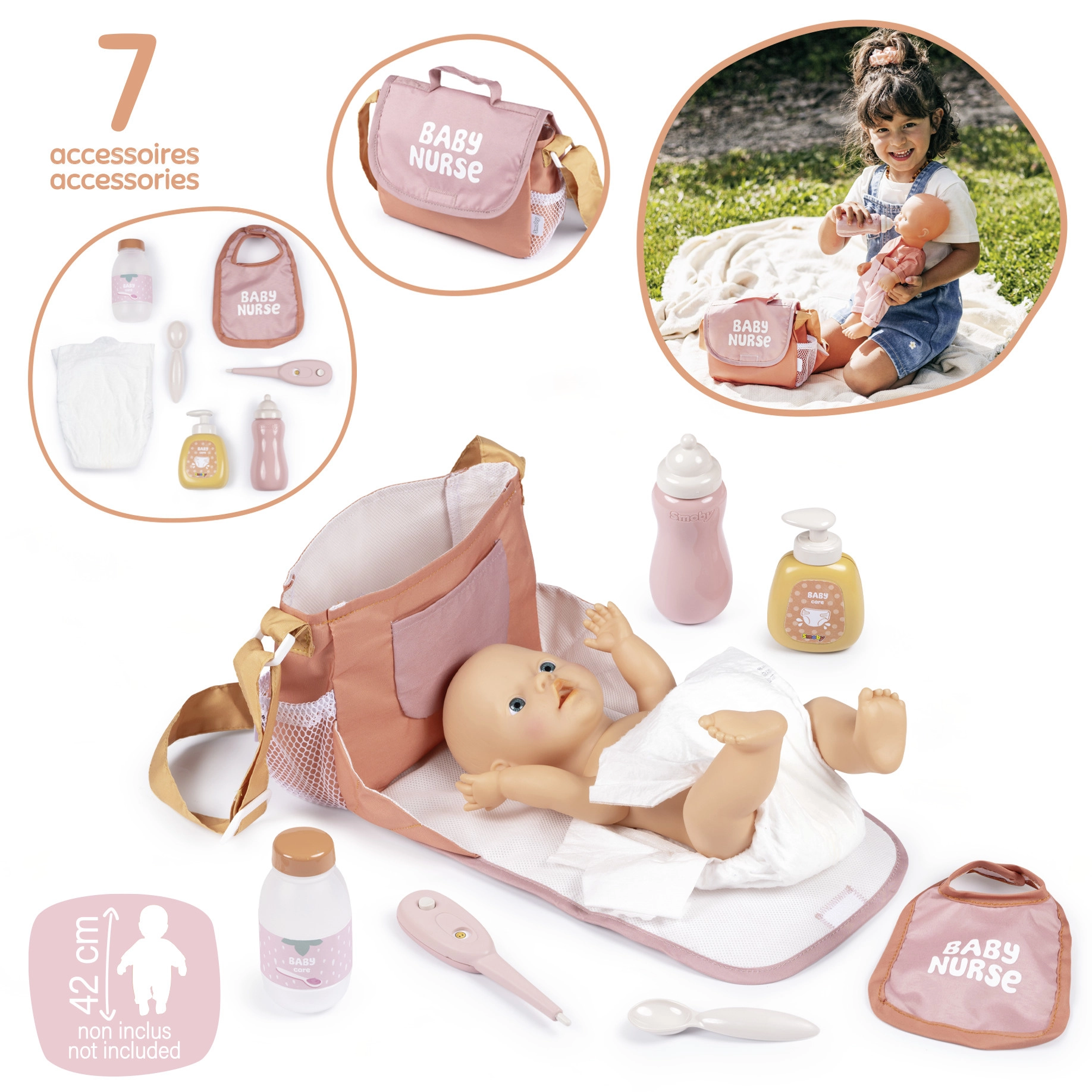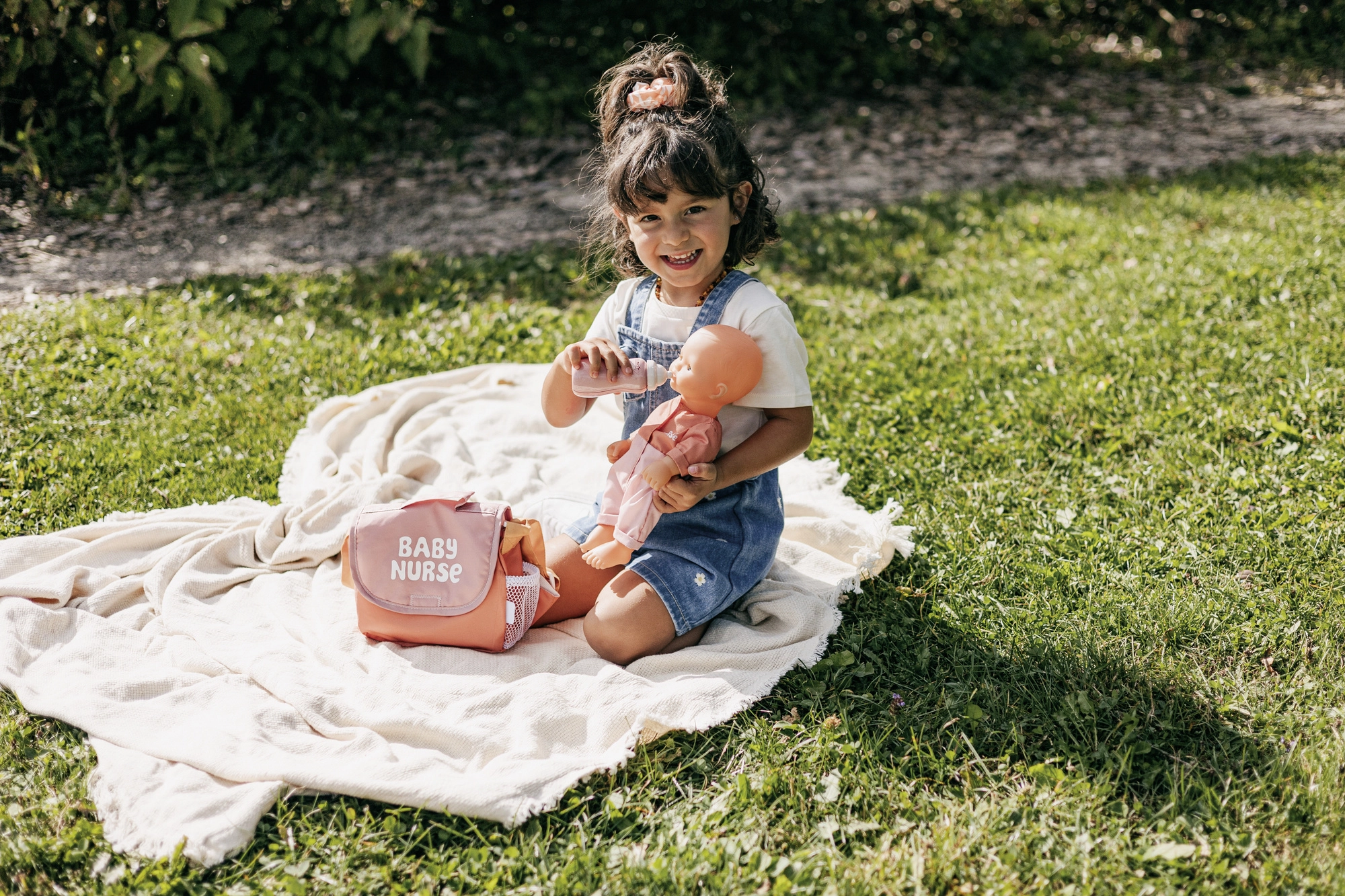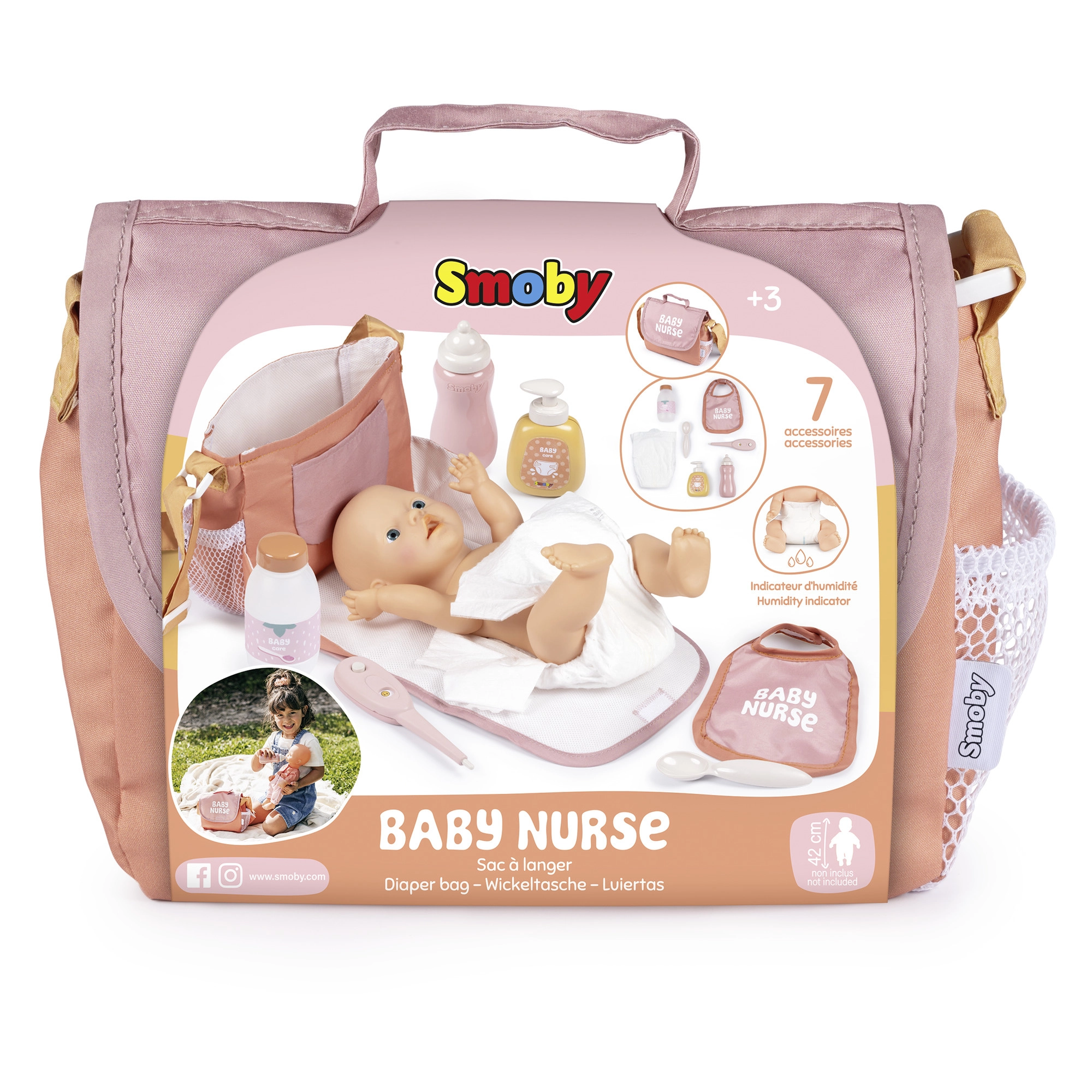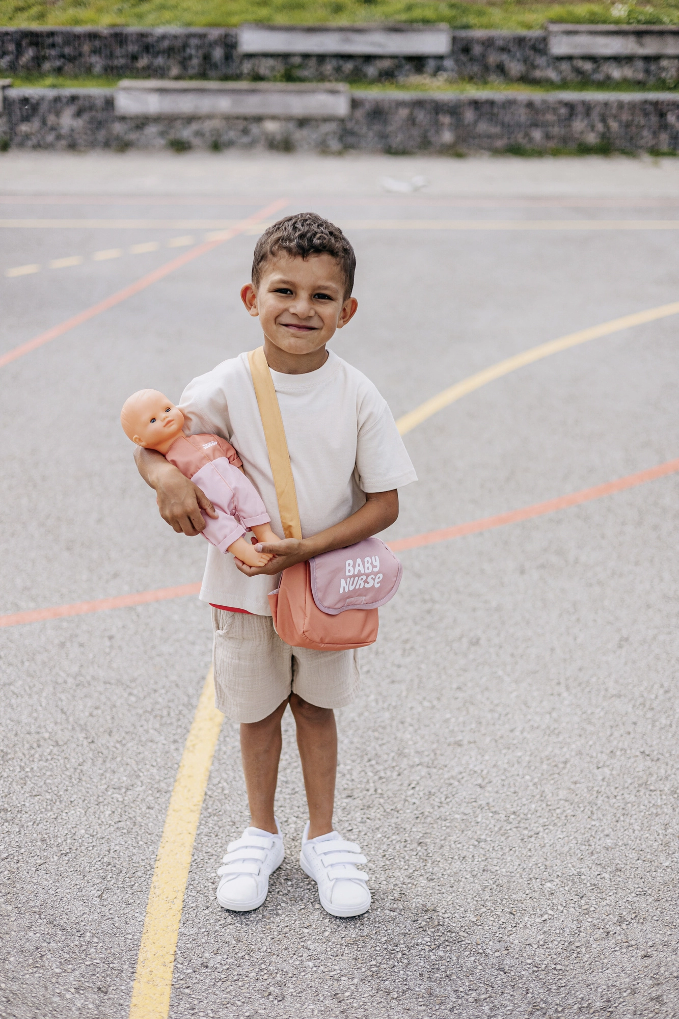 This stylish SMOBY BABY NURSE bag is a great companion for little caregivers. With a large flap and well-designed pockets, you can easily store all the essentials and take them anywhere safely. When unfolded, the bag turns into a practical changing mat, so care for the “baby” is always within reach.