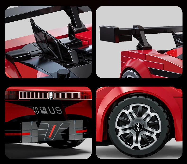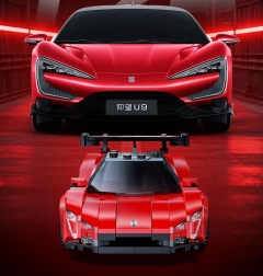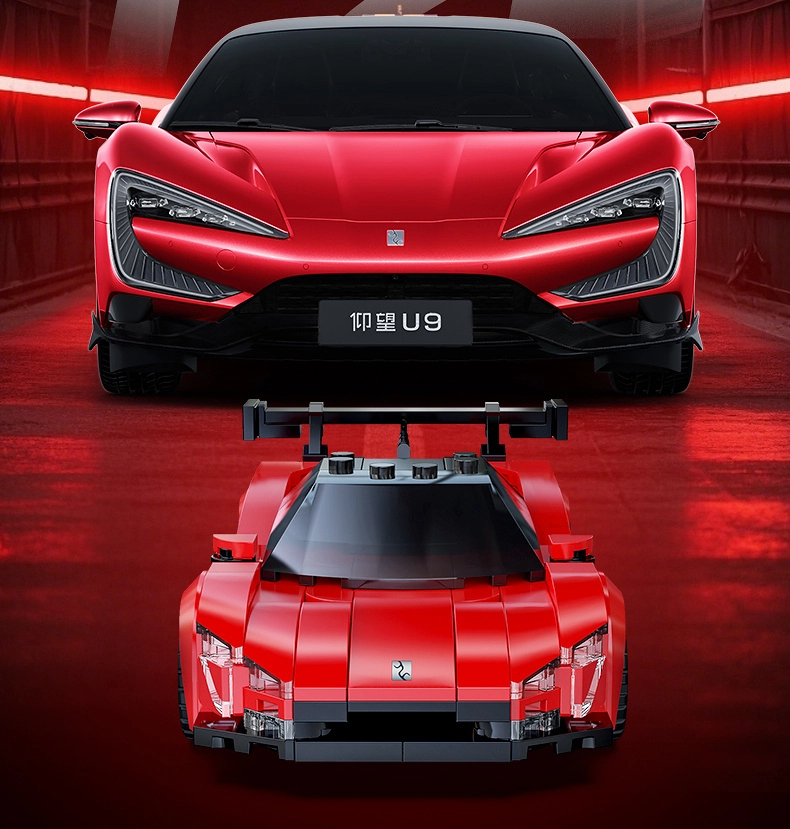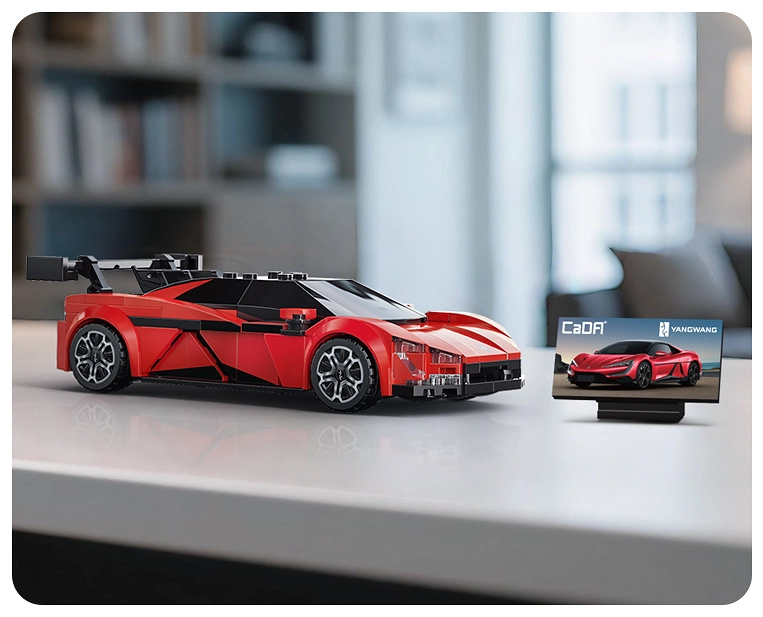 Enjoy building and displaying the precisely crafted YANGWANG U9 by CaDA. The model is designed with authentic details, features rotating wheels for smooth movement on flat surfaces, and an elegant red finish. The box also includes an exclusive printed “YANGWANG U9” card.