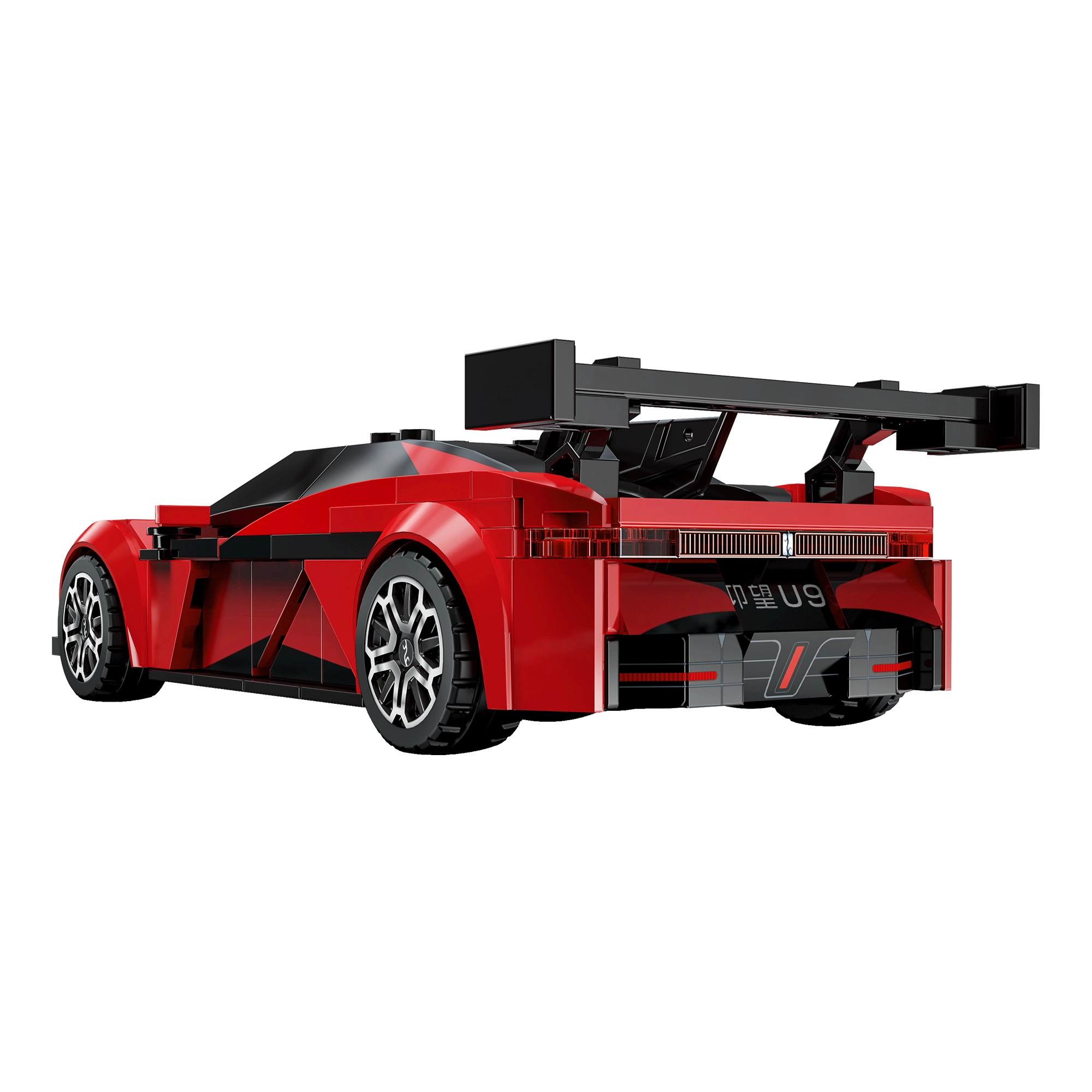 The faithfully crafted red body, detailed rims, and large rear wing make the YANGWANG U9 model an unmissable display piece.