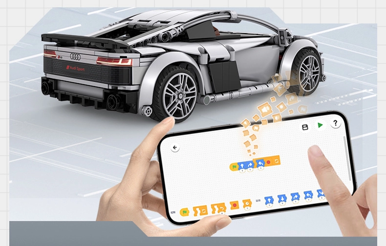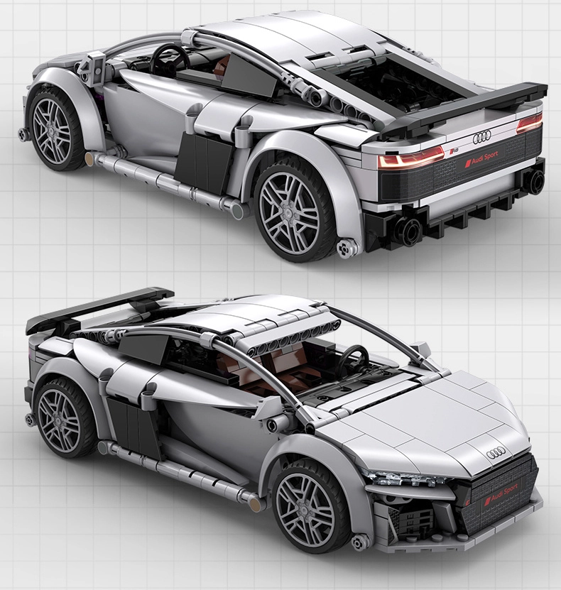 The CaDA RC AUDI R8 Coupé building set combines the joy of creation with modern technology. Once assembled, it becomes a detailed model measuring 28 × 13.5 × 9 cm that faithfully mirrors the original’s lines in elegant gray. Thanks to the official license, you’ll enjoy authentic body shapes, printed details instead of stickers, and a detailed interior.