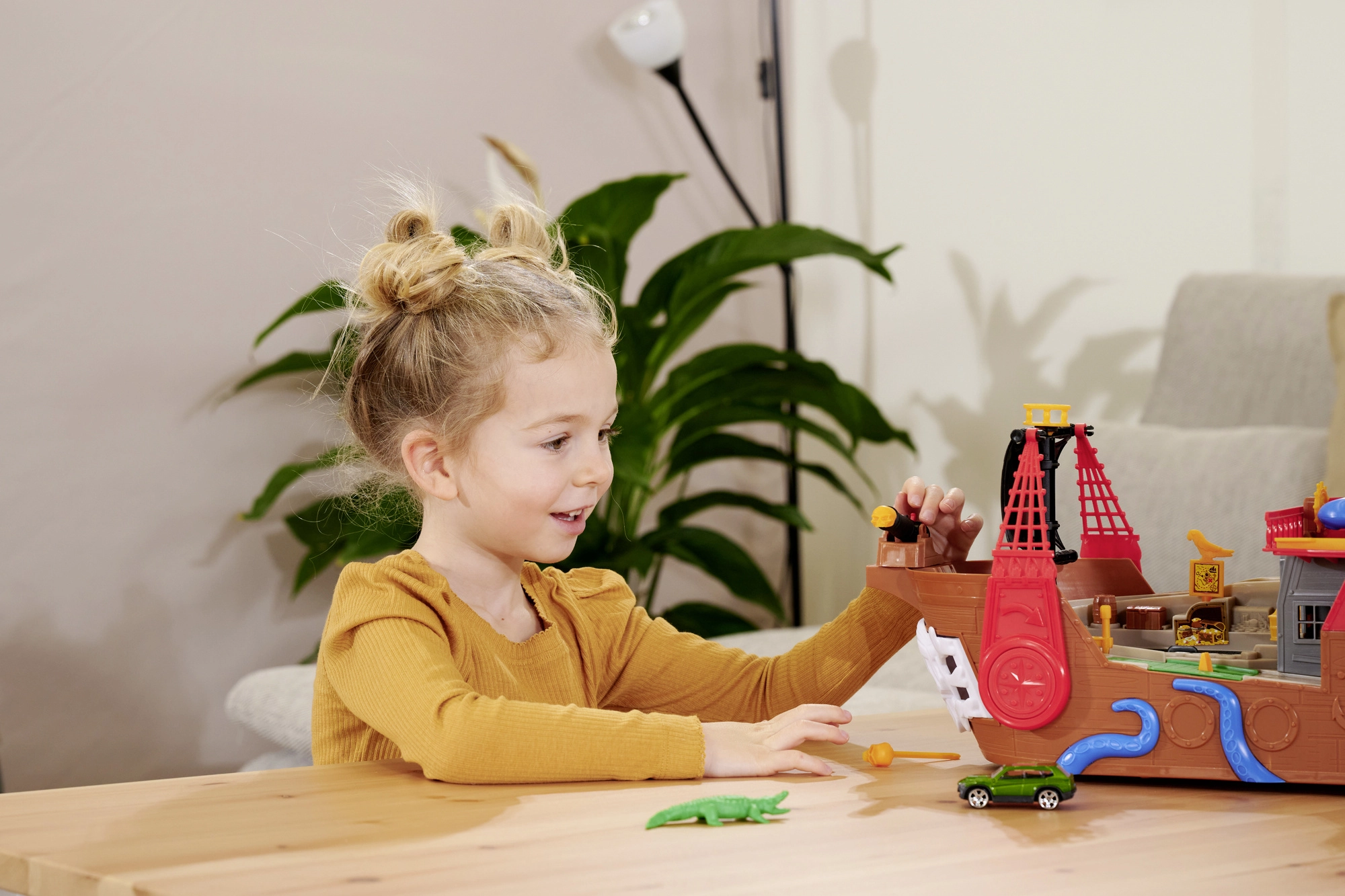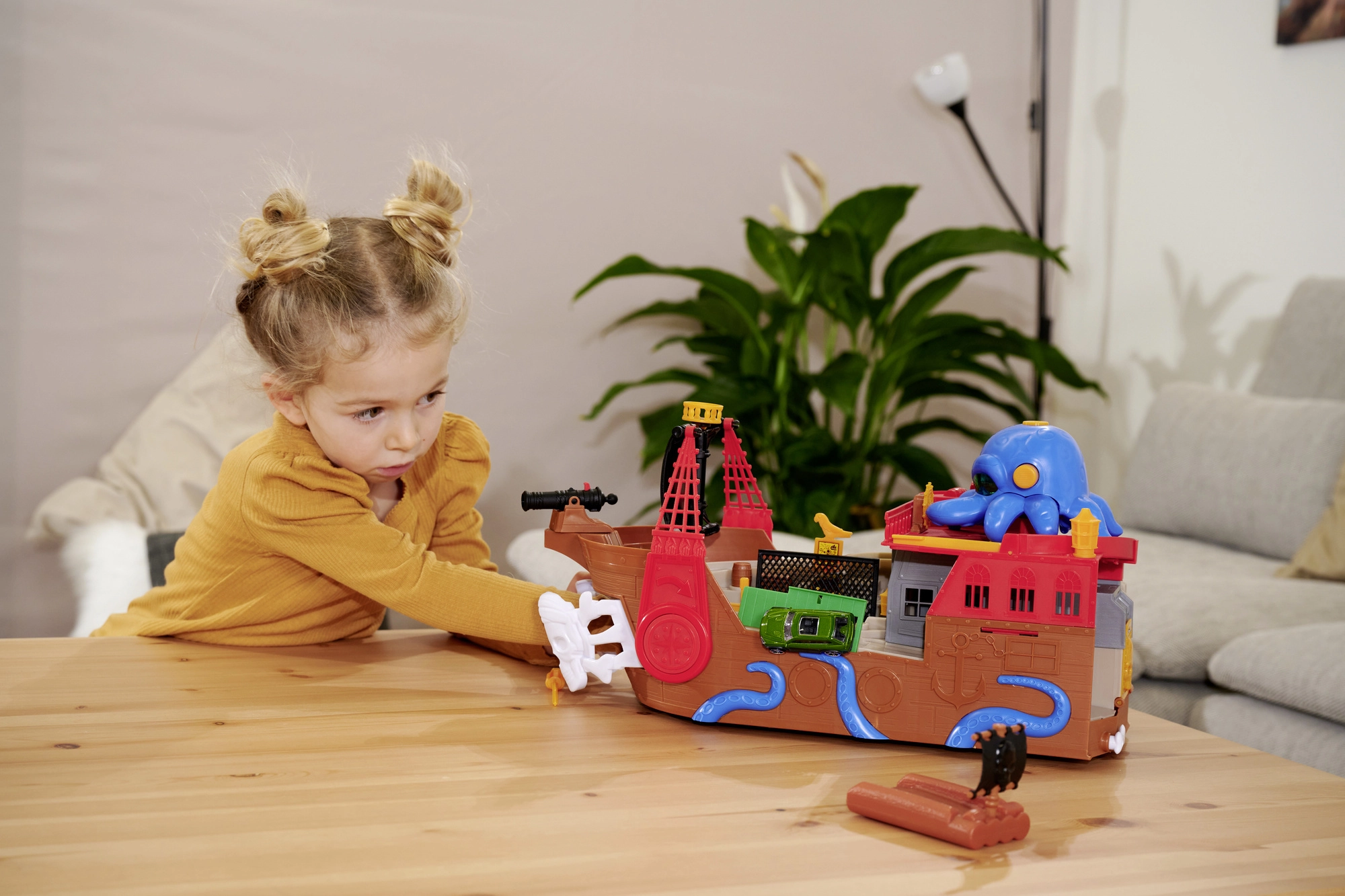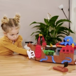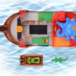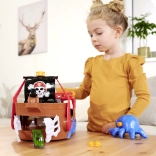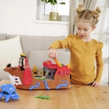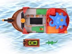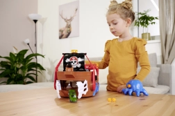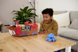 The detachable octopus with light and sound effects lights up its eyes and uses its tentacles to “snag” the car or other pieces—perfect for dramatic pirate adventures. The ship and raft float on water, making them ideal for the bath, pool, or paddling pool. After water play, the action continues on the carpet thanks to the interactive features and the car’s smooth ride.
