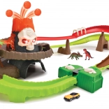 After the blast, simply reset the set and start again. Themed elements are included too—a short tunnel of “bone ribs” and dinosaur figures—to spark imagination and inspire new play scenarios. The track can be connected to other tracks (sold separately) to build a giant city full of challenges.