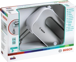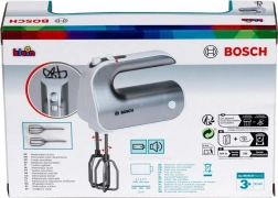Give kids the fun of a real kitchen. The licensed BOSCH mixer in a silver finish faithfully mimics a real appliance: press the button to spin the beaters, and use the sliding switch to imitate speed settings. Thanks to the detachable attachments, children also learn habits of tidying up.