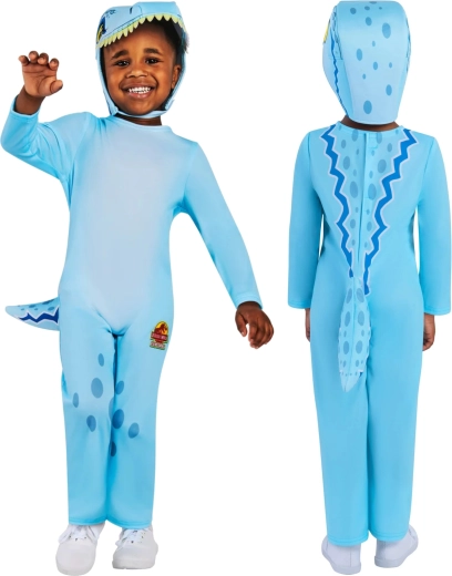 Explore the world of dinosaurs with the officially licensed JURASSIC WORLD Velociraptor costume for kids aged 3–4 years (height 100–107 cm). The lightweight, comfortable polyester jumpsuit is easy to put on, featuring long sleeves and legs, a hood shaped like a dinosaur head, and a small tail for an even more realistic look.
