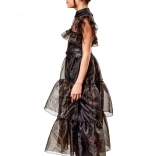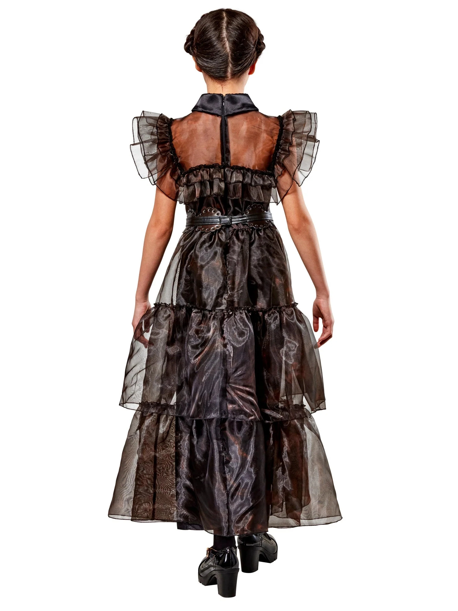 Transform a young fan into an iconic heroine – the WEDNESDAY Rave’n Dance dress delivers elegant gothic style with attention to detail. The long layered skirt, high collar, and gently sheer ruffled sleeves create a dramatic effect just like at the school dance in the series.