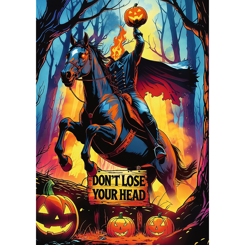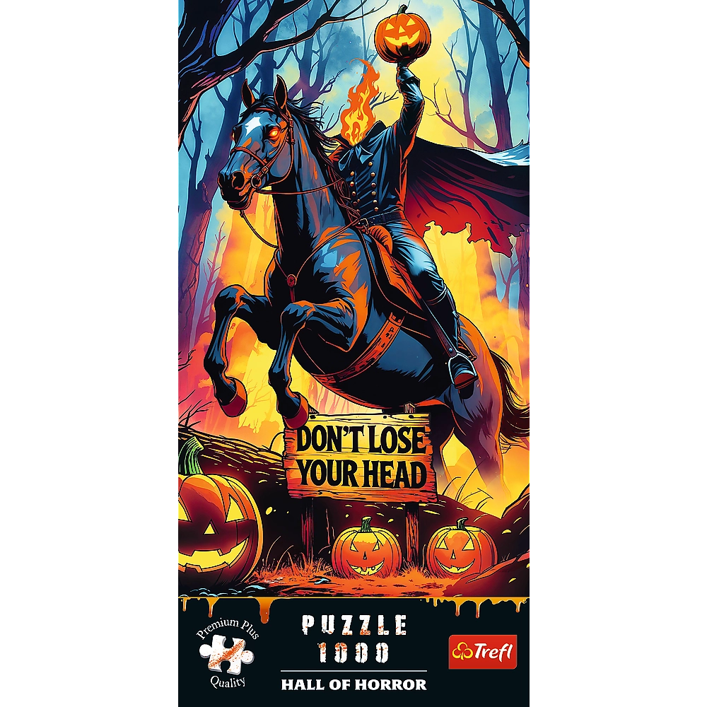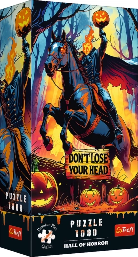 Enjoy quality puzzling with TRELF puzzles featuring the Hall of Horror – Headless Rider motif. The box includes 1000 pieces made from durable, thick cardboard with precise cuts for smooth assembly. The product is FSC certified and the plastic packaging components are compostable and biodegradable.