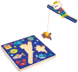 The Fishing insert puzzle by Djeco is an ideal first puzzle for the youngest children. Large, sturdy pieces with a smooth surface are easy for little hands to hold and fit into the prepared shapes. Visually engaging illustrations of fish and the underwater world motivate repeated play.