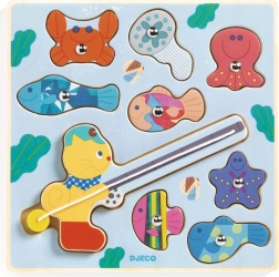 The DJECO fishing insert puzzle with a kitten is ideal as a first social activity – children practice concentration and coordination while having lots of fun. High-quality workmanship and durable materials ensure safe and long-term use.