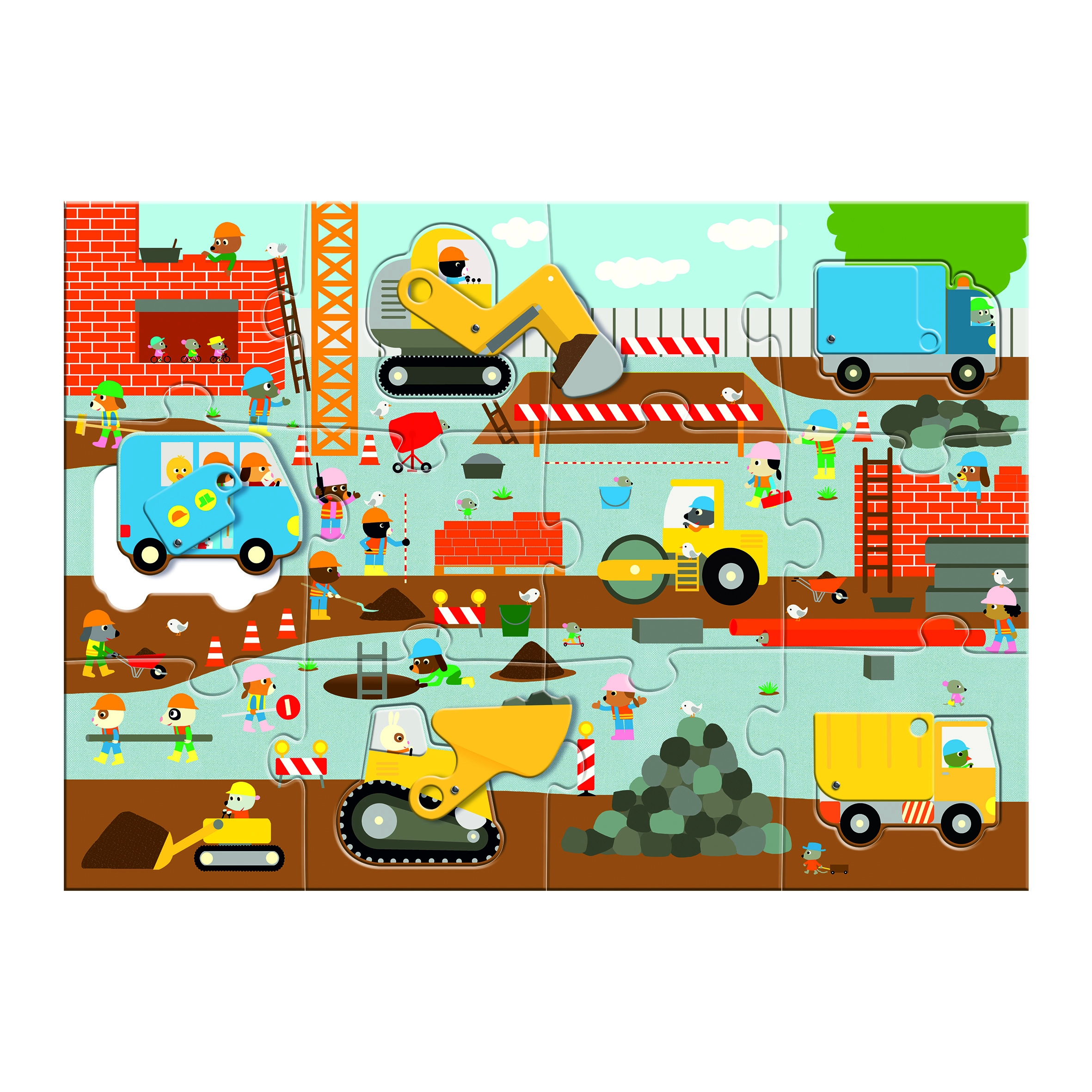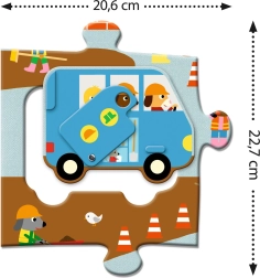 This set supports the development of motor skills, hand–eye coordination, and logical thinking. High-quality workmanship and attractive illustrations encourage exploration and repeated play. A great choice as a first larger puzzle for fans of construction machines.