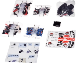 This technical building kit of an F1 racing car delights builders and motorsport fans alike. The parts connect easily, the structure is stable, and the finished model looks great on a shelf and racing across the floor. Included are a clear pictorial manual and a sticker sheet to fine-tune the racing design.