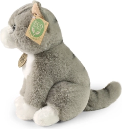 A cute grey plush cat, 23 cm tall, made from an exceptionally soft material from the Soft Collection. Thanks to its handcrafted finish, it looks lifelike, is soft to the touch, and features an eco-friendly filling made from recycled PET bottles to protect nature. Suitable even for newborns.