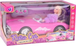 Discover the charm of classic design in a modern form. The pink retro convertible with a doll at the wheel is ideal for kids who love style, fashion, and creative play. The car offers remote control, working headlights, and music effects for an even richer driving experience.