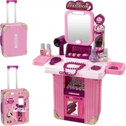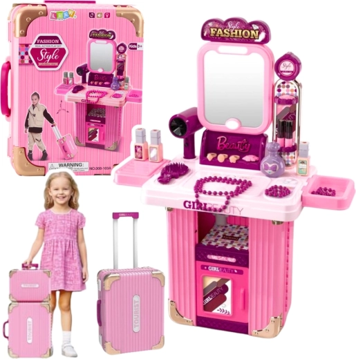 Stylish 2-in-1 children’s vanity in a practical suitcase that unfolds into a magical beauty table. Features a light-up mirror, sound effects, and plenty of accessories for beauty-salon play. Lightweight and mobile thanks to wheels and a telescopic handle, made from safe materials – supports creativity, imagination, and fine motor skills.