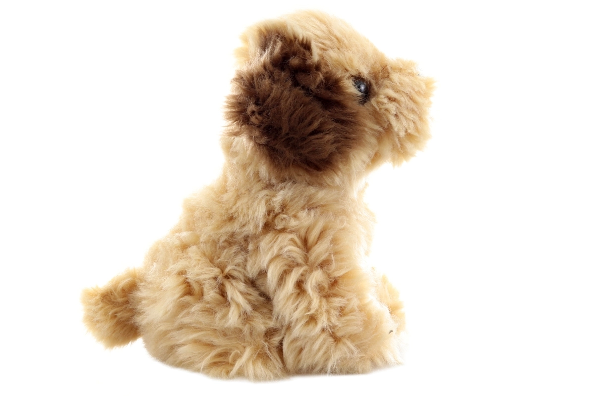 This realistically crafted plush Shih‑tzu has soft, fluffy fur in beige tones with darker ears and a cute little nose. Thanks to its soft filling, it’s perfect for cuddling and supports imagination and emotional development from birth.