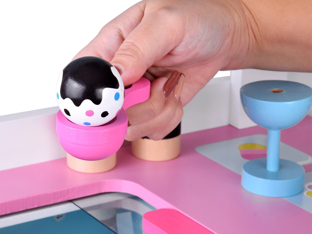 - Stable assembly: scoops and ice creams attach to cones and cups using pegs, so they hold well and are easy to remove.